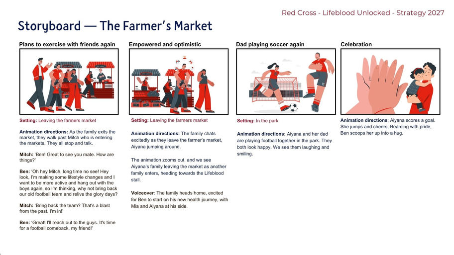 In this project we collaborated with stakeholders in a design sprint to create a short animated vision video for Red Cross Lifeblood, effectively communicating the Preventative Health strategy. Facilitated strategic decision-making for Lifeblood 2027.